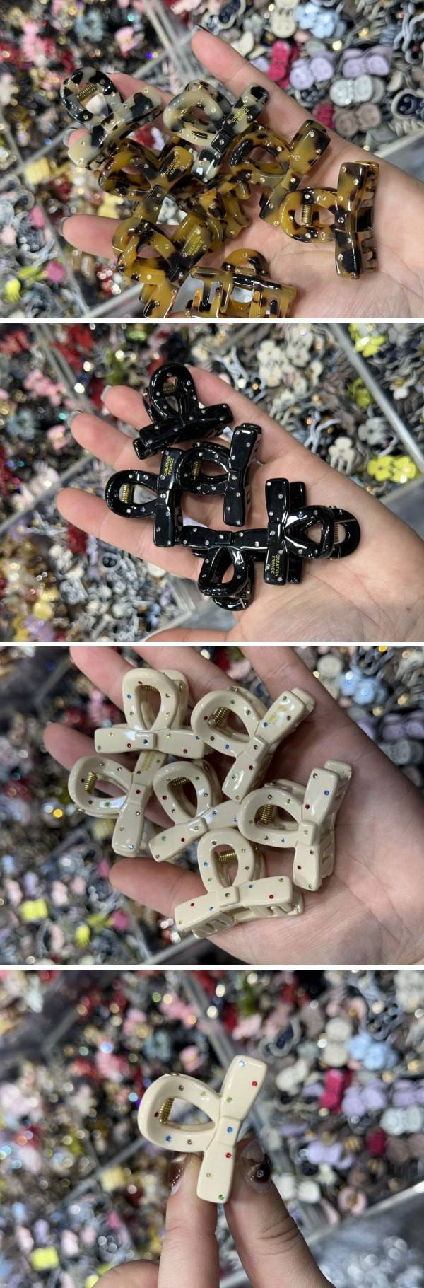 蝴蝶結植絨拼接格紋三角簍空髮夾4色 韓國飾品 韓國耳環 耳環 髮飾 手鍊 戒指 純銀飾品 珍珠耳環 三麗鷗代購 飾品店