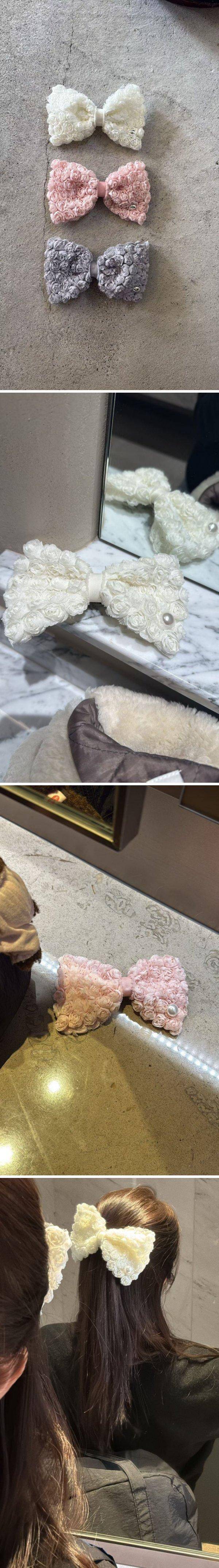 玫瑰花蕾絲珍珠彈簧夾3色