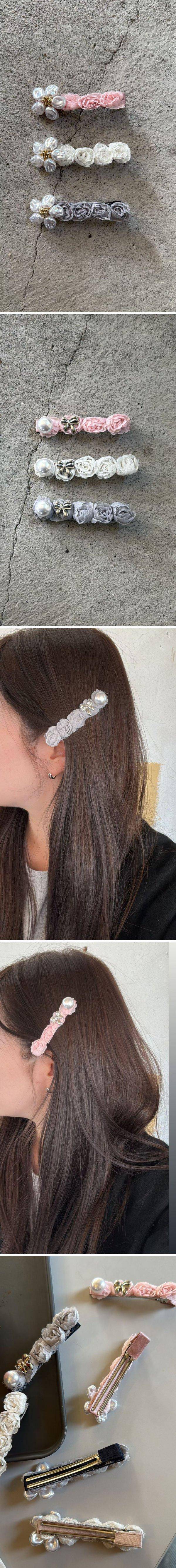 玫瑰花蕾絲珍珠彈簧夾3色 韓國飾品 韓國耳環 耳環 髮飾 手鍊 戒指 純銀飾品 珍珠耳環 三麗鷗代購 飾品店