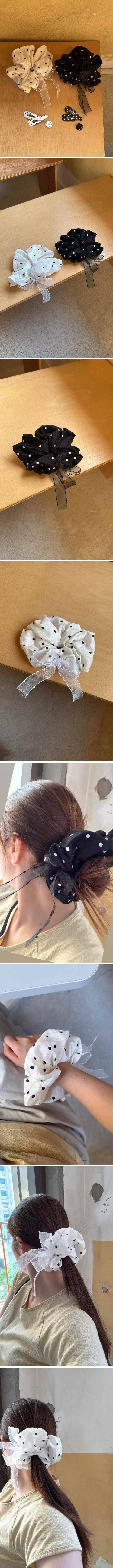 點點雪紡蝴蝶結大腸圈 韓國飾品 韓國耳環 耳環 髮飾 手鍊 戒指 純銀飾品 珍珠耳環 三麗鷗代購 飾品店