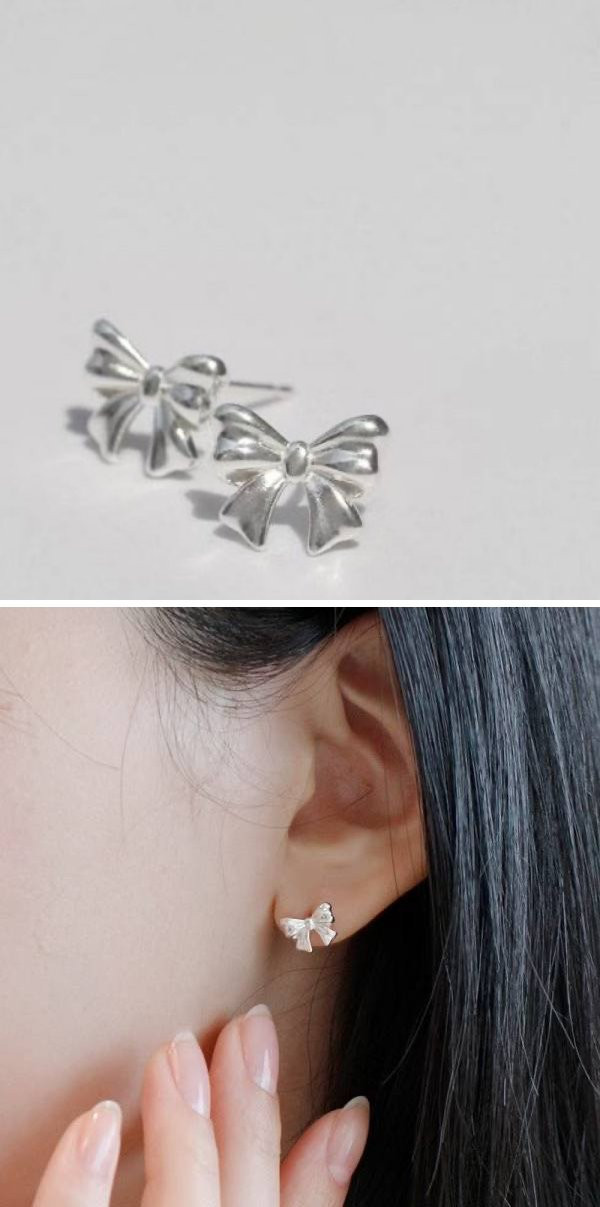 925純銀 蝴蝶結貼耳耳環