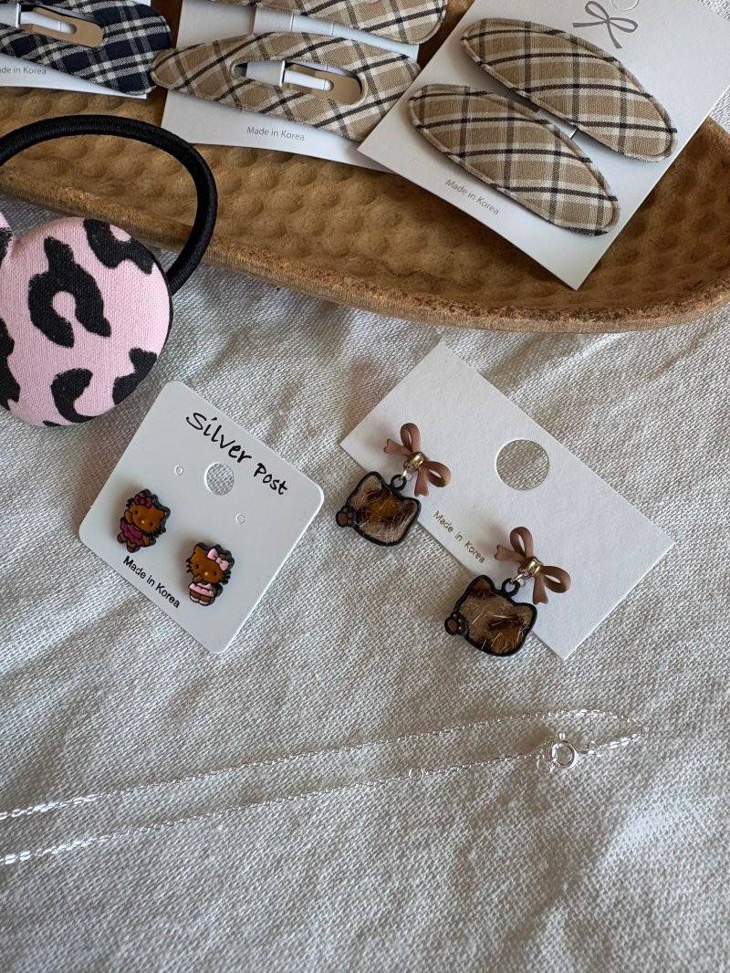 貓咪豹紋腳印蝴蝶結耳環 韓國飾品 韓國耳環 耳環 髮飾 手鍊 戒指 純銀飾品 珍珠耳環 三麗鷗代購 飾品店