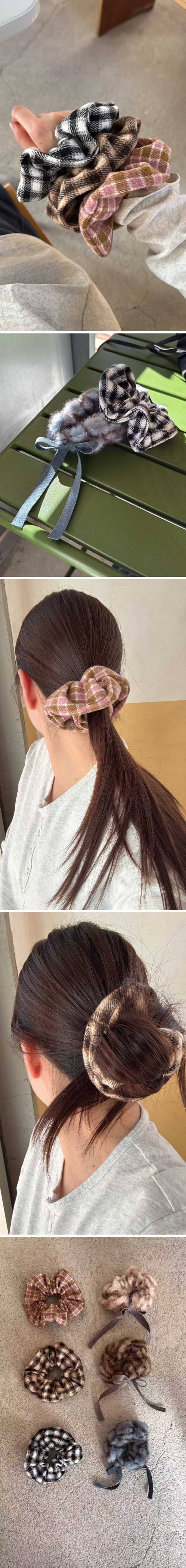毛呢格子大腸圈 韓國飾品 韓國耳環 耳環 髮飾 大腸圈 腸圈 手鍊 戒指 純銀飾品 珍珠耳環 三麗鷗代購 飾品店
