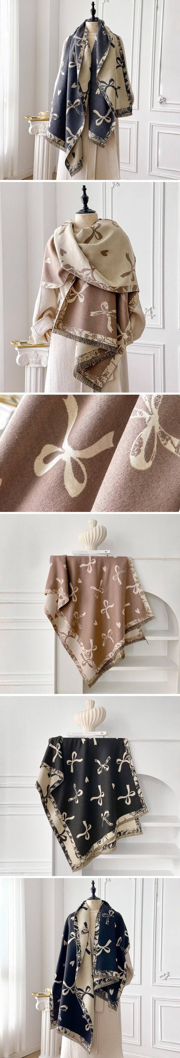 蝴蝶結愛心雙面羊絨圍巾3色