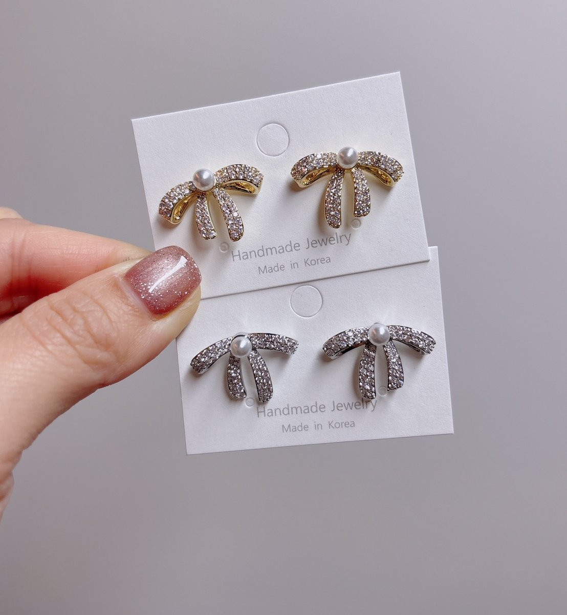 珍珠滿鑽蝴蝶結耳環2色 韓國飾品 韓國耳環 耳環 髮飾 大腸圈 腸圈 手鍊 戒指 純銀飾品 珍珠耳環 三麗鷗代購 飾品店