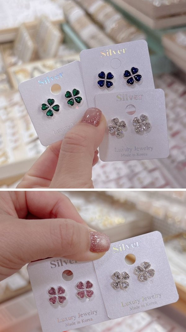 鋯石幸運草貼耳耳環 韓國飾品 韓國耳環 耳環 髮飾 大腸圈 腸圈 手鍊 戒指 純銀飾品 珍珠耳環 三麗鷗代購 飾品店