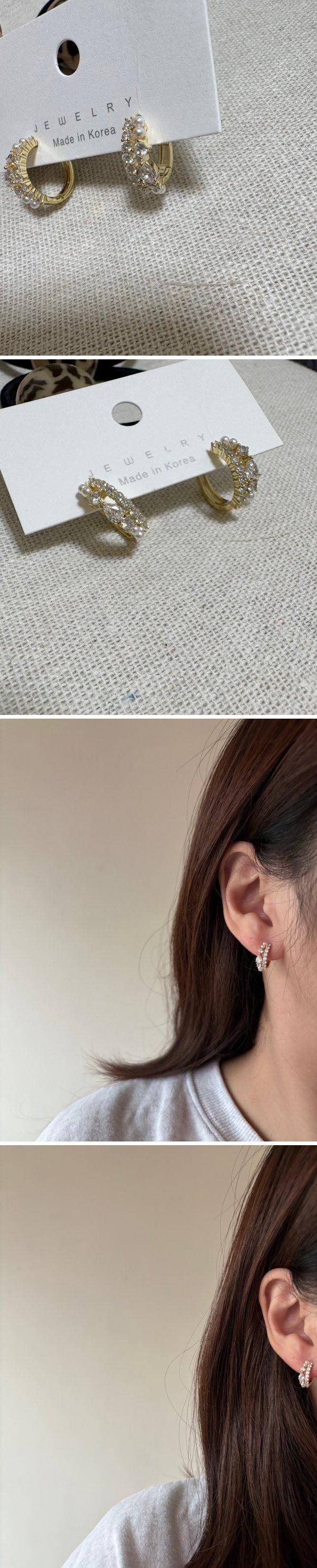 雙圈鋯石珍珠混搭耳環