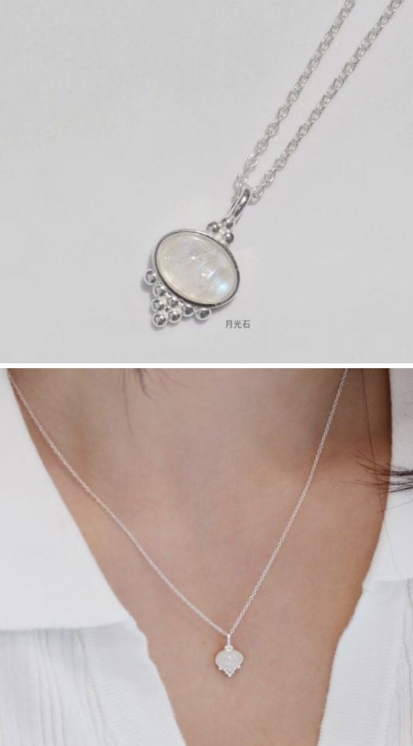 925純銀 月光石水滴項鍊