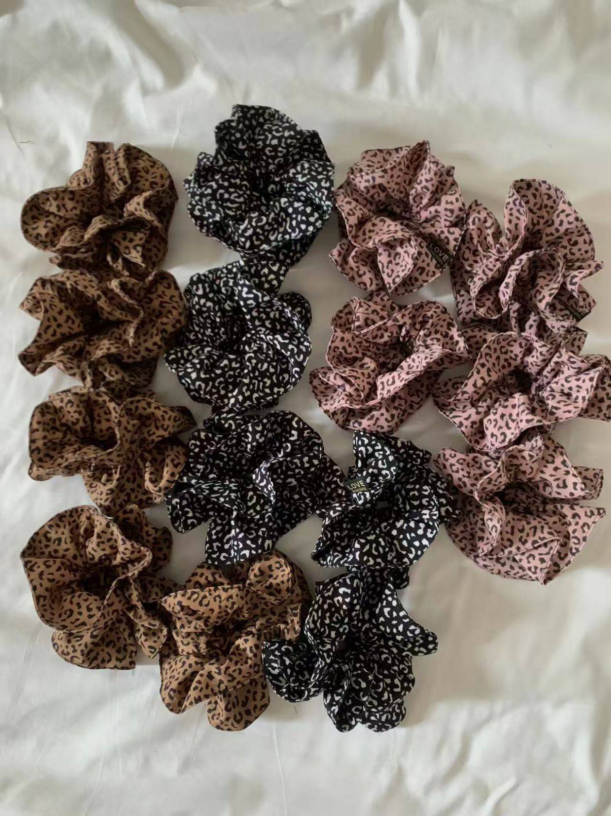 時髦豹紋花形大腸圈 大腸圈 韓國飾品 韓國耳環 耳環 髮飾 手鍊 戒指 純銀飾品 珍珠耳環 三麗鷗代購 飾品店