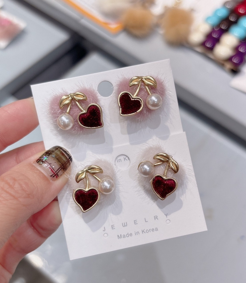 櫻桃珍珠愛心耳環 韓國飾品 韓國耳環 耳環 髮飾 手鍊 戒指 純銀飾品 珍珠耳環 三麗鷗代購 飾品店