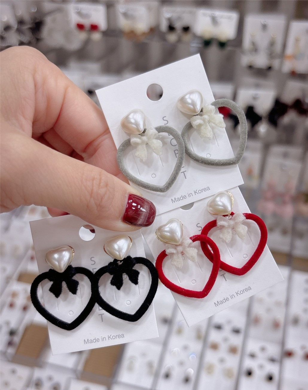 愛心珍珠與愛心絨蝴蝶結耳環 韓國耳環 耳環 髮飾 大腸圈 腸圈 手鍊 戒指 純銀飾品 珍珠耳環 三麗鷗代購 飾品店