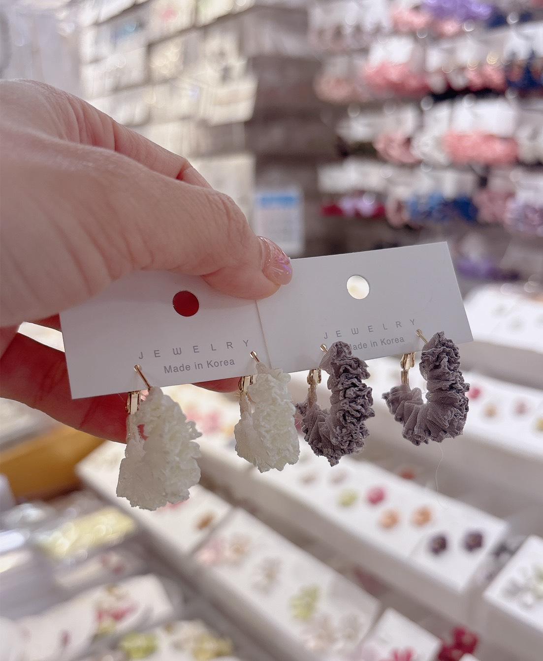 堆疊蕾絲布圈圈耳 韓國飾品 韓國耳環 耳環 髮飾 手鍊 戒指 純銀飾品 珍珠耳環 三麗鷗代購 飾品店