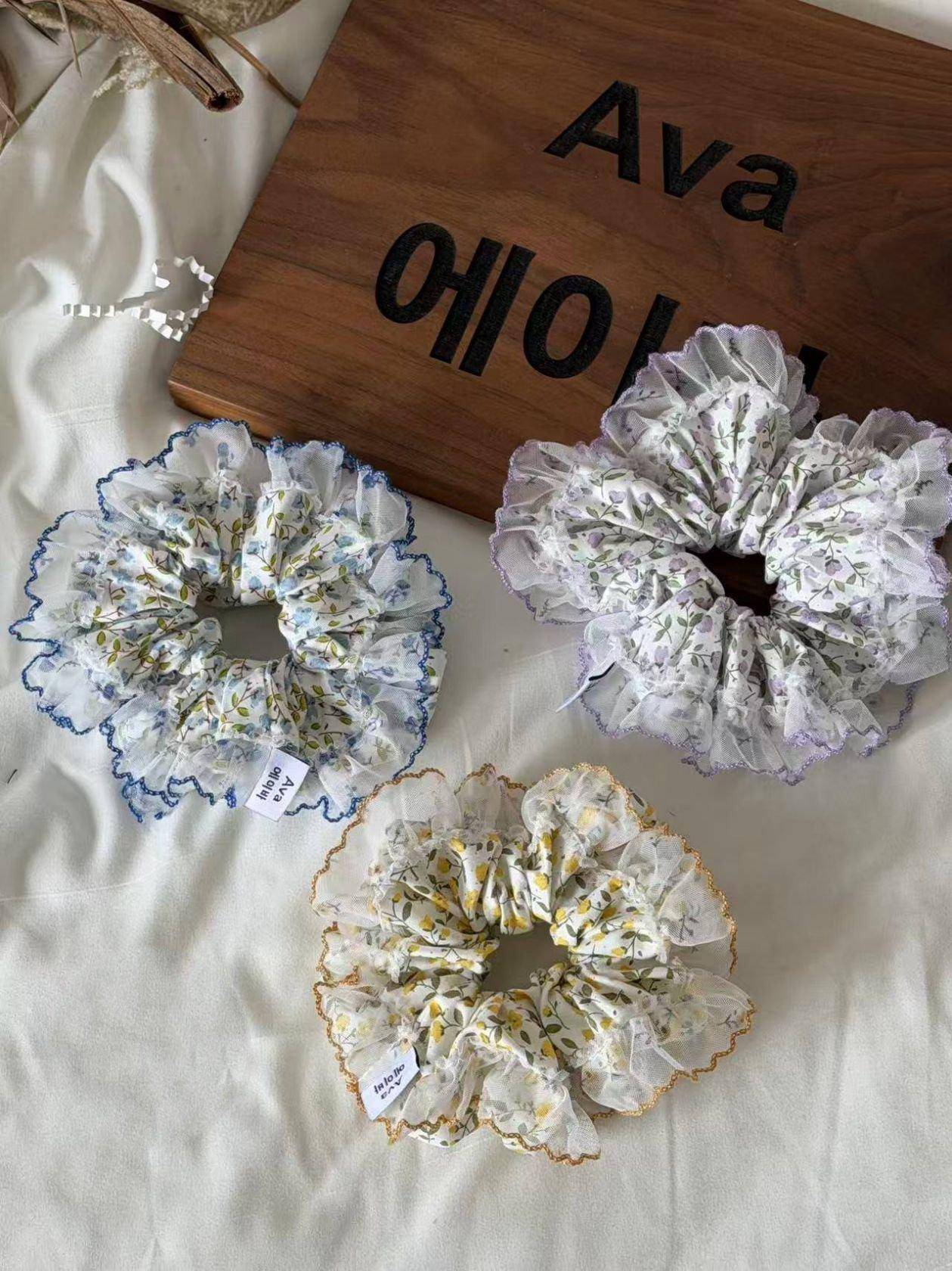 小花蕾絲滾邊拼接紗髮圈 花形滾邊蝴蝶結紗大腸圈 蕾絲花瓣滾邊小碎花大腸圈 韓國飾品 韓國耳環 耳環 髮飾 手鍊 戒指 純銀飾品 珍珠耳環 三麗鷗代購 飾品店