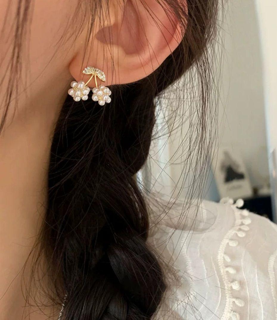 可愛櫻桃珍珠耳環 韓國耳環 耳環 髮飾 手鍊 戒指 純銀飾品 珍珠耳環 三麗鷗代購 飾品店