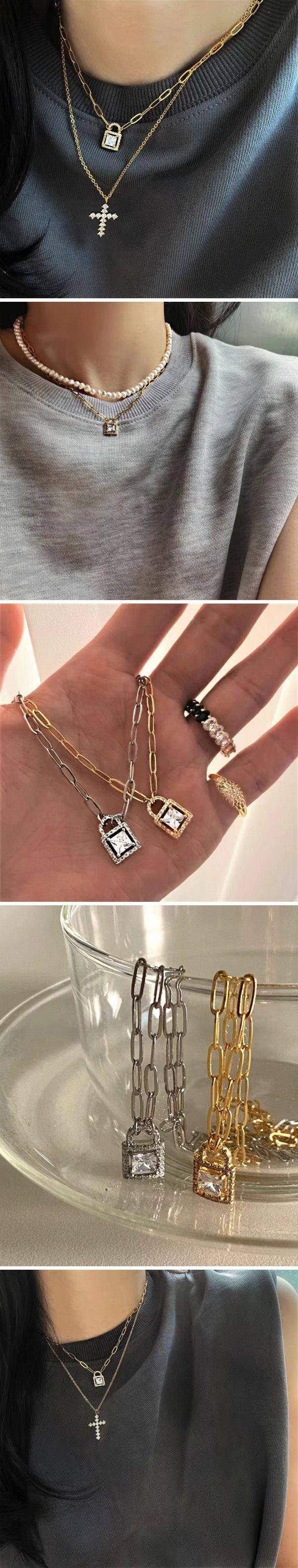 24K鍍銅 方塊鎖頭項鍊2色