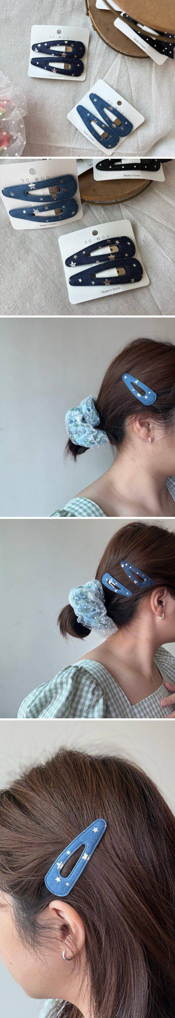 星星牛仔三角簍空BB髮夾2色