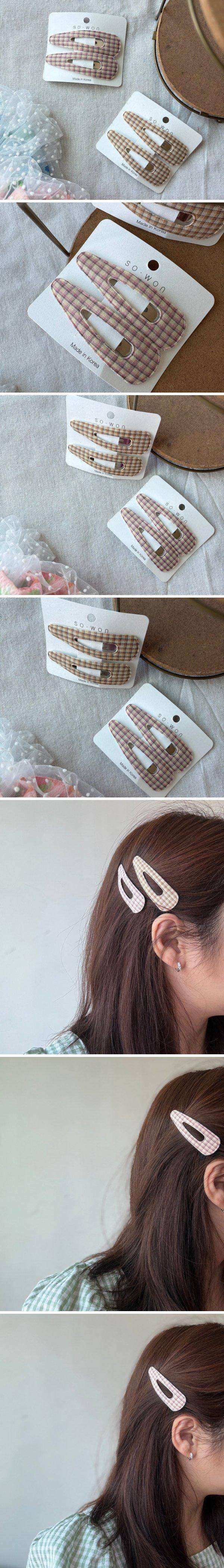 清新格子三角簍空BB髮夾2色