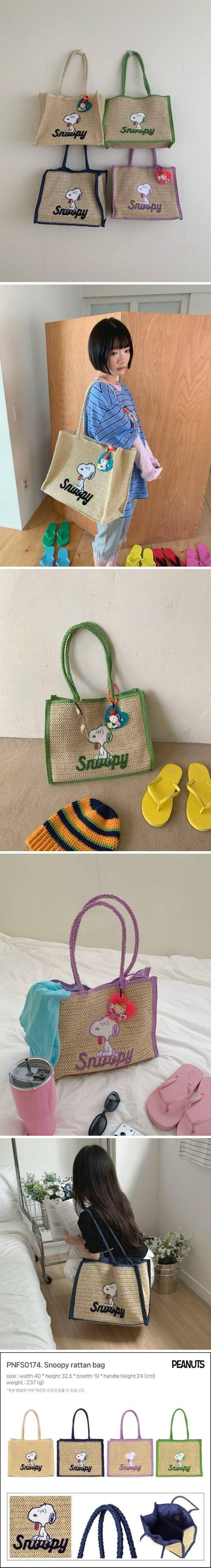 Le-junev新款PEANUTS 史努比草編滾邊包包4色 韓國飾品 韓國耳環 耳環 髮飾 大腸圈 腸圈 手鍊 戒指 純銀飾品 珍珠耳環 三麗鷗代購 飾品店